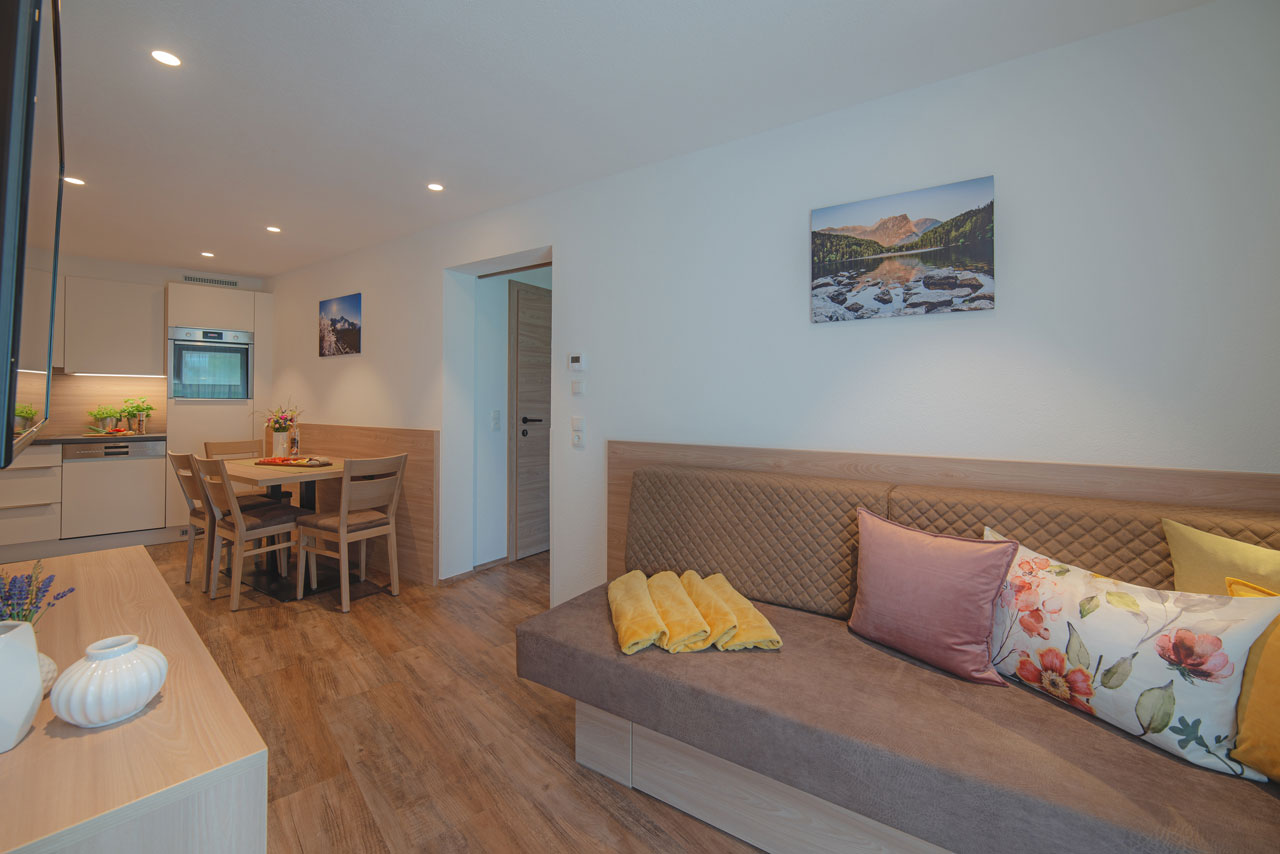 Die gemütlichen Zimmer sind liebevoll eingerichtet und verzaubern mit ihrem eigenen Charme. Für jedes Schlafzimmer steht für Sie ein eigenes, geräumiges, modern eingerichtetes Badezimmer mit Dusche und WC bereit. Für gemeinsame Kochstunden in der voll ausgestatteten Wohnküche steht Ihnen nichts im Weg. Der Wohnbereich mit der bequemen Couch und dem Flat-TV laden zum Entspannen und Relaxen ein.